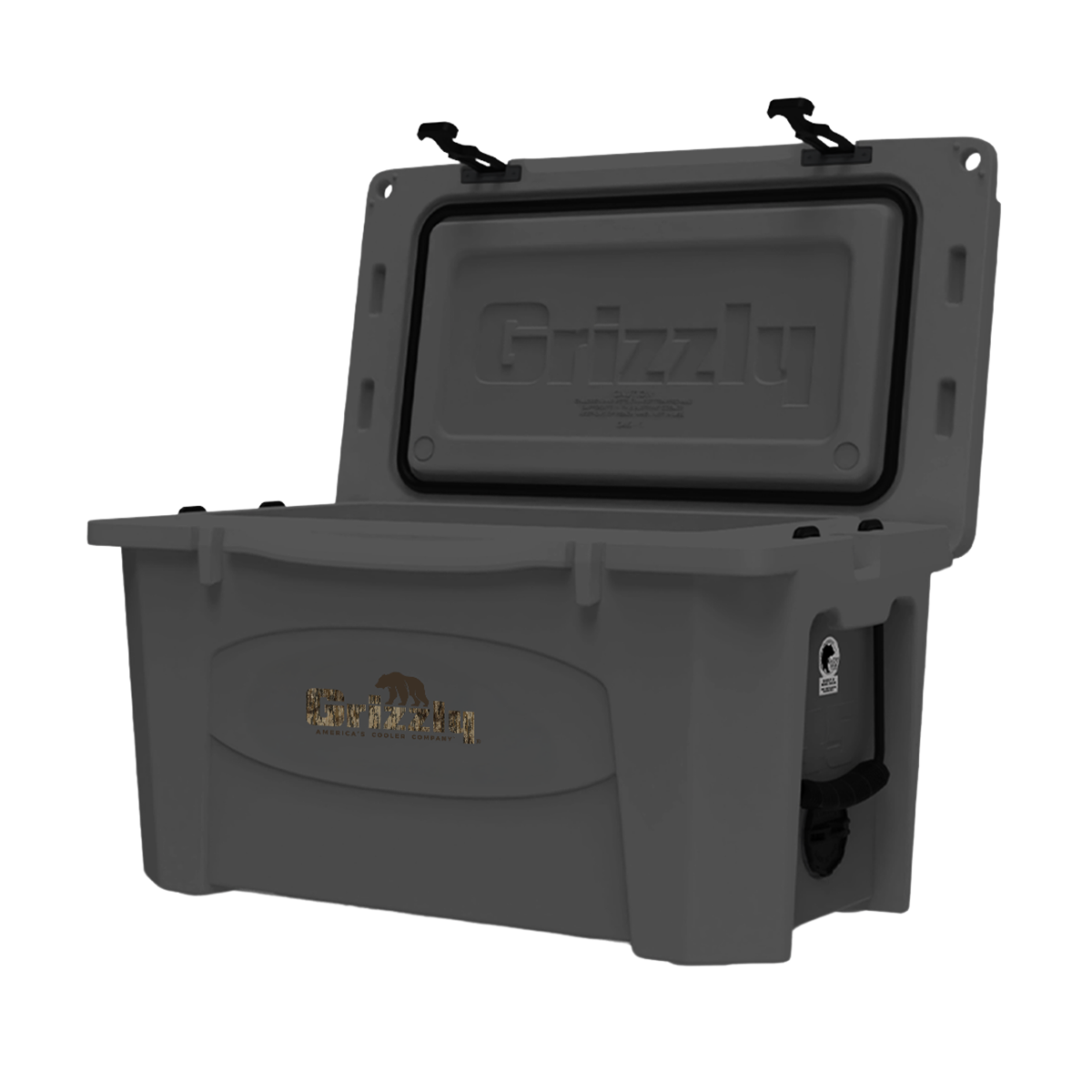 Meanwhile, tie-down slots help secure your fishing cooler in your truck, boat, or UTV. At the end of your journey, the 2” drain plug allows quick and complete draining of your 45 qt fishing cooler. The Grizzly 45 Cooler holds up to 42 cans with 20 pounds of ice. Made in the USA.