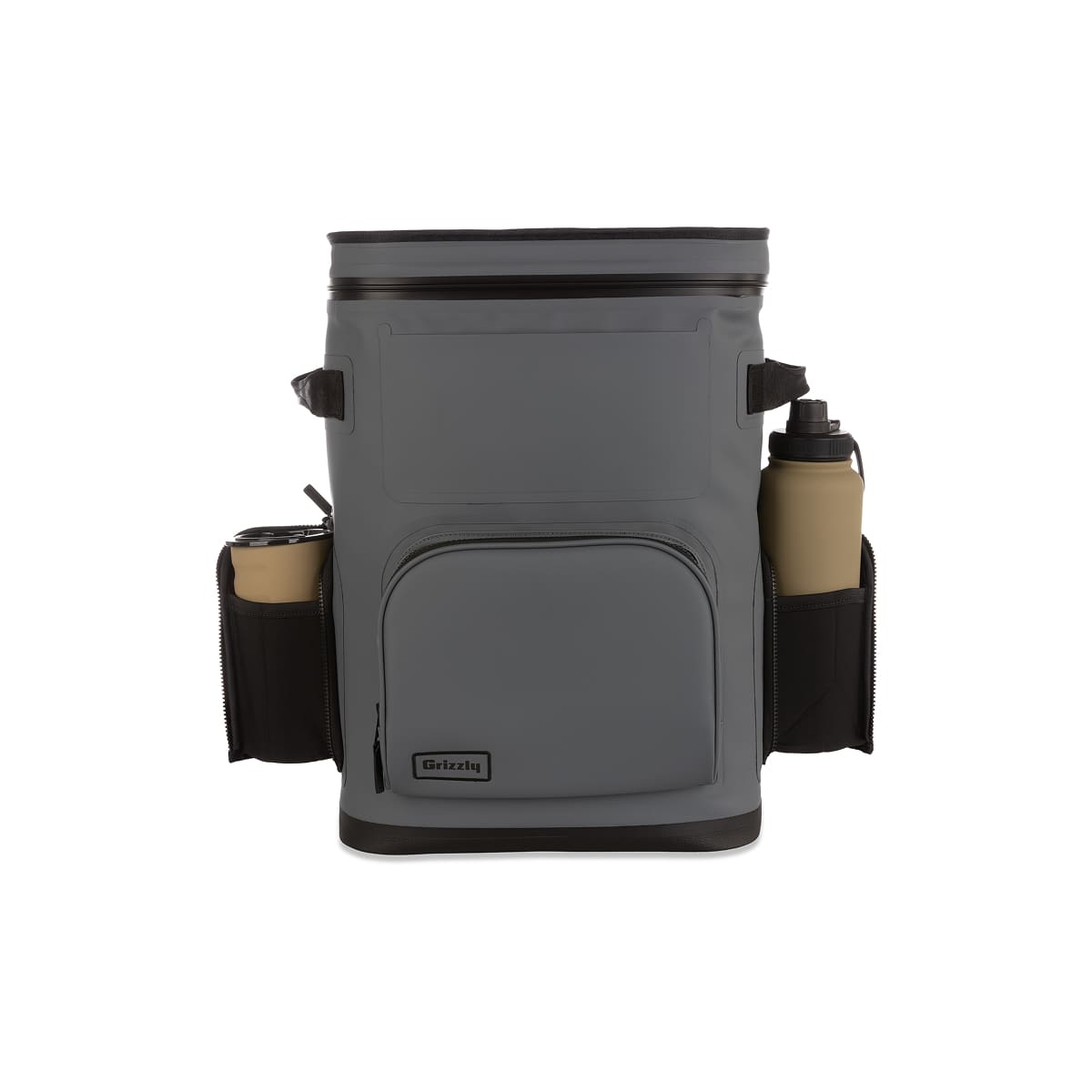 • The Grizzly Drifter 24 backpack cooler is as durable as you’d expect from Grizzly with a ton of features packed in to keep you going. We start with a surprising 24-quart capacity and include welded seams to keep out the elements. Our TRU® Zip zipper and high-quality lining ensure good insulation, and the large center storage and integrated drinkware pockets make sure you can take everything you need with you.