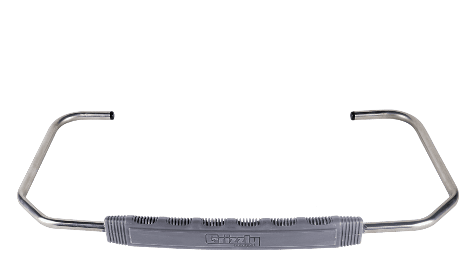 Stainless steel handle with over-molded rubber grip. This optional Grizzly 20 cooler handle is tough, and it allows you to take your cooler anywhere you want to go. This is one of our must-have Grizzly cooler accessories. Imported.