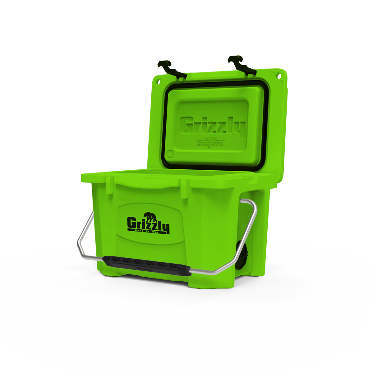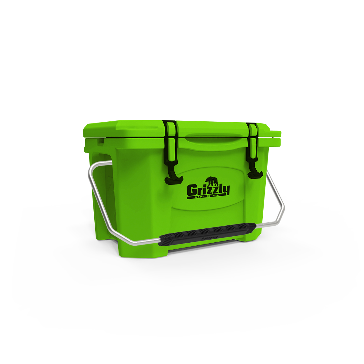 • The Grizzly 20 Cooler is the perfect addition to an outing involving you, a friend or two, and your favorite food and drinks. This camping cooler is big enough to accommodate the essentials, yet small enough to pack and carry with ease. The stainless steel handle with foam grip makes for a smooth transition from boat to beach or dugout to bleachers.